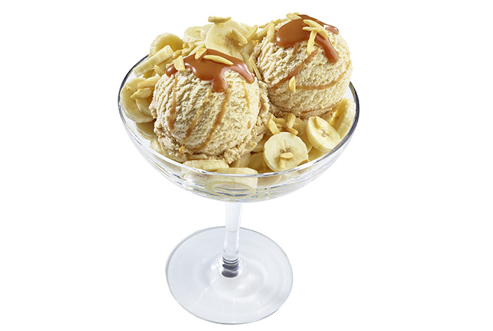 Mit dem Trendprodukt Carte D'Or Toffee vegan bietet Eskimo bewusst eine Variante für die Menschen an, die sich für eine vegane Ernährung entschieden haben. So können Gastronomen nun auch vegane Eisdesserts anbieten wie z. B. einen Coupe Toffee Vegan: Kombi-nieren Sie zwei Kugeln Toffee vegan mit frischen Bananen und feinen Mandelsplittern. Vollenden Sie die Kreation mit dem köstlich-karamelligen Carte D'Or Topping Toffee. Das ist Karamellgenuss pur!