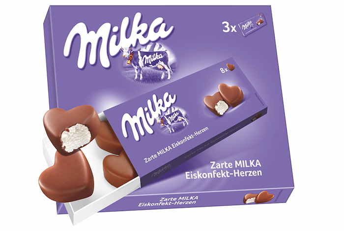 Froneri bringt Milka Eisgenuss jetzt auch zum Snacken in den Handel. Genauer gesagt als Zarte Milka Eiskonfekt-Herzen mit Milka Alpenmilchschokolade, gefüllt mit cremigem Vanilleeis. 2019 erfolgreich als Impulseis gelauncht, sind die „Herzchen“ fortan auch in der praktischen 3er-Multipackung erhältlich. Ideal für den besonderen Genussmoment zu Hause oder für eine Auszeit unterwegs.