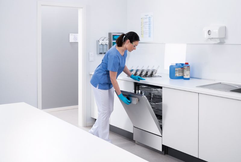 Steelco-Geräte für eine Aufbereitungseinheiten für Medizinprodukte: Mit dem angestrebten Joint Venture mit der Schweizer Holding Metall Zug baut Miele seine Marktposition in den Bereichen Klinik und Pharma weiter aus. (Foto: Steelco)