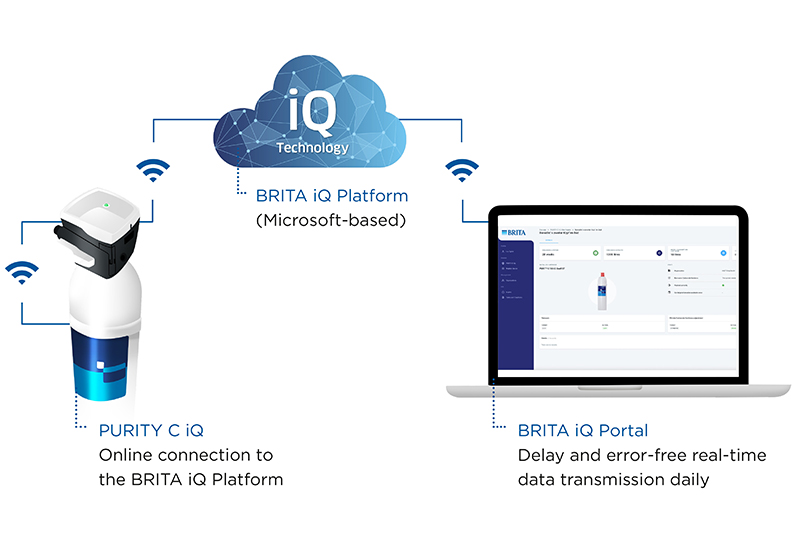 In der Rushhour eines Gastrobetriebs muss ein Rädchen ins andere passen. Verlässlichkeit, Planbarkeit und intuitive Bedienbarkeit sind grundlegende Anforderungen an die Technik. Digitalisierung bietet hier effiziente Möglichkeiten – so wie die BRITA iQ-Technologie. Sie besteht aus dem cloudbasierten iQ Portal, dem intelligenten Filterkopf PURITY C iQ und dem brandneuen Durchflusssensor iQ Meter. Letztere beiden sind in der Lage, dem Portal die wichtigsten Filterdaten für ein effizientes und bedarfsgerechtes Filtermanagement zu senden.