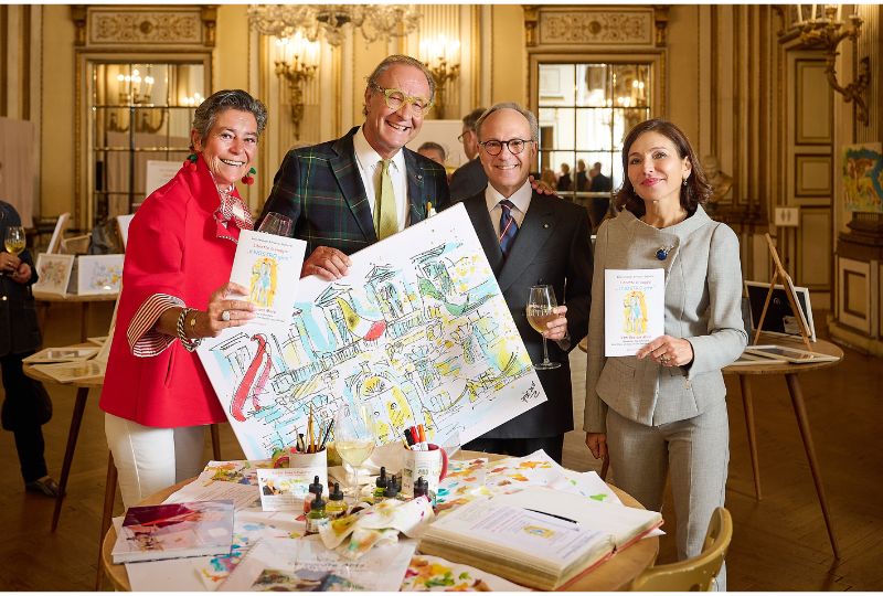 Zunächst wurde in Wien präsentiert: Gemeinsam mit S.E. Dott. Giovanni Pugliese, Botschafter der Italienischen Republik in Österreich lud das sympathische Power-Couple die „Libretto-Protagonisten“ und ausgewählte Sammler der FSE-Englhofer-Bilder zum Cocktail und zur Vernissage in die italienische Botschaft im Palais Metternich. In seiner Eröffnungsrede bedankte sich Seine Exzellenz bei den beiden für ihr großartiges Engagement und ihre Leidenschaft, mit denen sie in einer weiteren Ausgabe der Reihe „Libretto di viaggio“ ihre Liebe zur Schönheit Italiens bekunden und unter Beweis stellen, dass sein Land eine unerschöpfliche Quelle der Inspiration sein kann. Ganz besonders bedankte er sich dafür, dass in dieser Ausgabe auch das Palais Metternich in Wort und Bild präsentiert wird. Dieses prachtvolle Gebäude beherbergt seit 1908 die Italienische Botschaft, steht für die historische Verbindung zwischen Österreich und Italien und ist auch ein besonderer Ort, um unsere Freundschaft zu feiern.“ Damit prostete der Botschafter in die Runde…