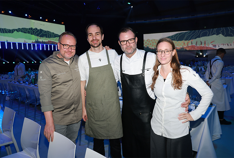 Das gesellschaftliche Highlight des diesjährigen Symposiums war die Jubiläumsgala, die mit Top-Showacts wie den Mentalmagiern Anca & Lucca oder dem Bossa Club mit Sänger Didier Rucekeli sowie unter der kurzweiligen Moderation von Silvia Schneider und Alfons Haider für beste Unterhaltung sorgte. Kulinarisch begeisterten die vier Starköchinnen und -köche Christina Scheffenacker, Hubert Wallner, Oliver Scheiblauer und Klemens Gold mit exquisiter Kochkunst. Den emotionalen Höhepunkt des Abends bot die Laudatio von HOGAST-Gründungsmitglied Helmut Peter vom Weissen Rössl, der das Publikum zurück an die Anfänge der Einkaufsgenossenschaft mitnahm.