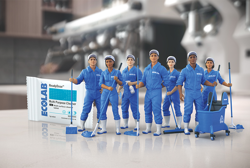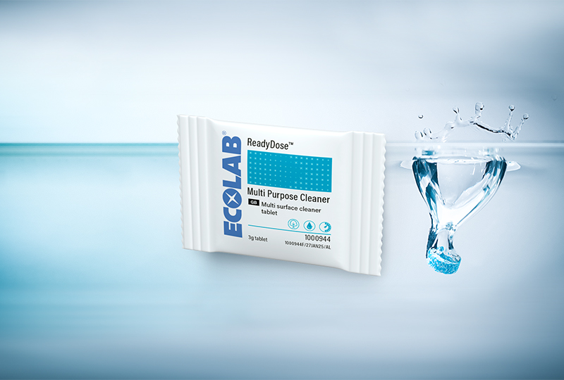 Die tägliche Reinigung einfacher gestalten mit dem ReadyDose™ Reinigungsprogramm – mit kleinen Tabs, groß im Einsatz. Einfachheit, Effizienz und extrem praktisch zu handhaben. Ideal aufzufüllen, Tab hinzugeben und auflösen lassen. Mitarbeitende und Betriebsverantwortliche sind mit den ReadyDose Tabs jedes Mal auf der sicheren Seite in punkto exakter Menge und garantiert richtiger Dosierung. ReadyDose ist bequem zu lagern und benötigt 84 Prozent weniger Lagerfläche. Das deutlich geringere Gewicht erleichtert und vereinfacht den Transport. Der Kunststoffabfall wird um 98,8 Prozent reduziert, zudem enorm Wasser und Energie gespart.
