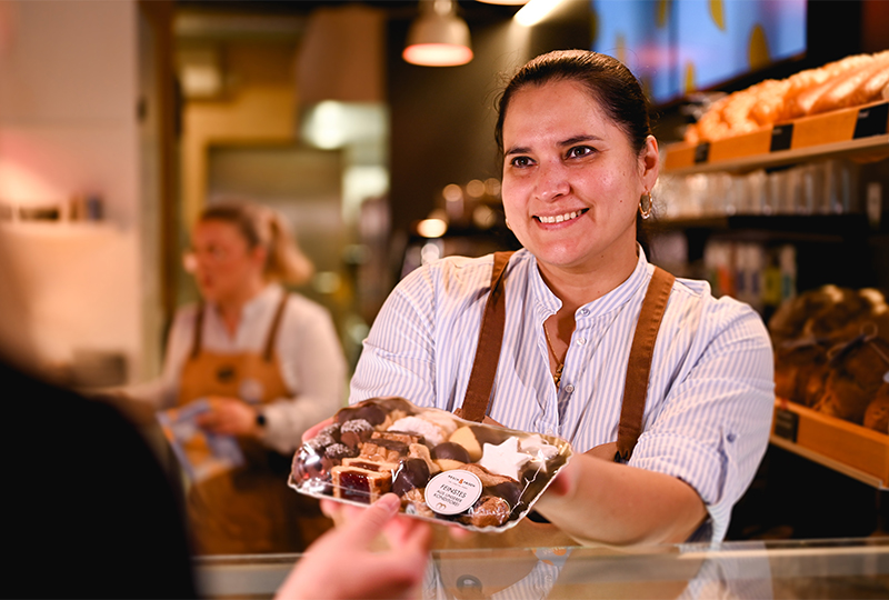 Bereits im September laufen in den Backstuben von Resch&Frisch die Öfen an. In sorgfältiger Handarbeit entstehen dort täglich zahlreiche Kekse, hergestellt von erfahrenen Konditor:innen mit viel Liebe zum Detail. Gebacken wird mit heimischem Mehl, Butter und Obers von oberösterreichischen Vertragslandwirten, verfeinert mit Hasel- und Walnüssen, Mandeln und echter Kuvertüre. Auf Palmöl, Fettglasur und Gentechnik wird konsequent verzichtet. Das Sortiment reicht von Klassikern wie Vanillekipferln, Linzer Augen und Florentinern bis hin zu exklusiven Sorten wie Nussecken oder Zimtsternen sowie einer glutenfreien Variation für bewusste Genießer:innen. Nachhaltigkeit spielt dabei eine immer größere Rolle und zieht sich durch alle Bereiche der Produktion.