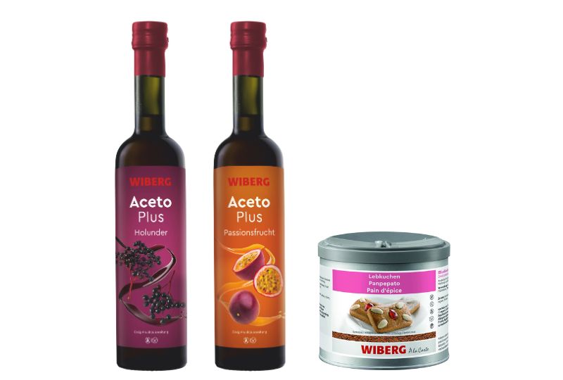 Thematisch passend empfiehlt sich auch Haselnussparfait mit balsamischen Kirschen & Karamell-Churros, bei dem balsamische Kirschen – verfeinert mit WIBERG Crema di Aceto – auf die süßen Klassiker Sweet Sauce Chocolate und Sweet Sauce Salty Caramel treffen.