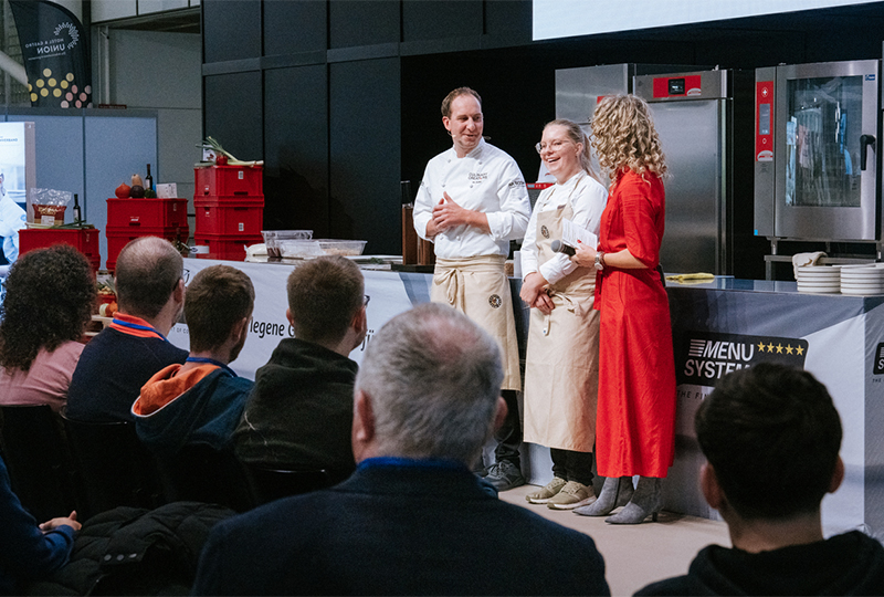 Neben der Ausstellung, die sich über die Hallen 1.0 und 1.1 der Messe Basel erstreckte, bot auch das Programm zahlreiche Highlights. In der Kocharena durften Besuchende Köchinnen und Köchen wie Dominik Sato, Patrick Mahler, André Kneubühler oder Elif Oskan in die Kochtöpfe schauen und ihre Gerichte degustieren. In zahlreichen Talks wurden aktuelle Themen wie die Nachwuchsförderung, die Zukunft der Hotellerie und Gastronomie oder die Rolle der KI aus unterschiedlichen Blickwinkeln diskutiert. Ein besonderes Highlight war das Podiumsgespräch mit Esther Lüscher, Präsidentin der Hotel & Gastro Union, Martin von Moos, Präsident von HotellerieSuisse, und Beat Imhof, Präsident von GastroSuisse, über die Zukunft der Gastfreundschaft.