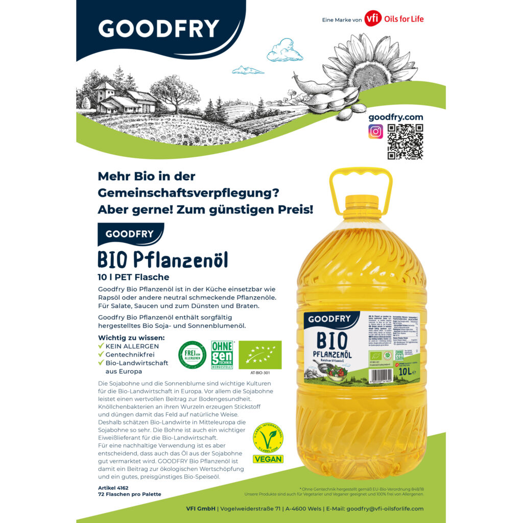 VFI Oils for Life aus Wels ist Europas größter Hersteller von Bio-Pflanzenölen. Das Angebot für Gastronomie und Gemeinschaftsverpflegung wird nun gerade rechtzeitig vor der Biofach auf neue Beine gestellt. Unter der Profi-Marke GOODFRY BIO finden Großerbraucher nun alle relevanten Bio-Öle unter einem Dach.