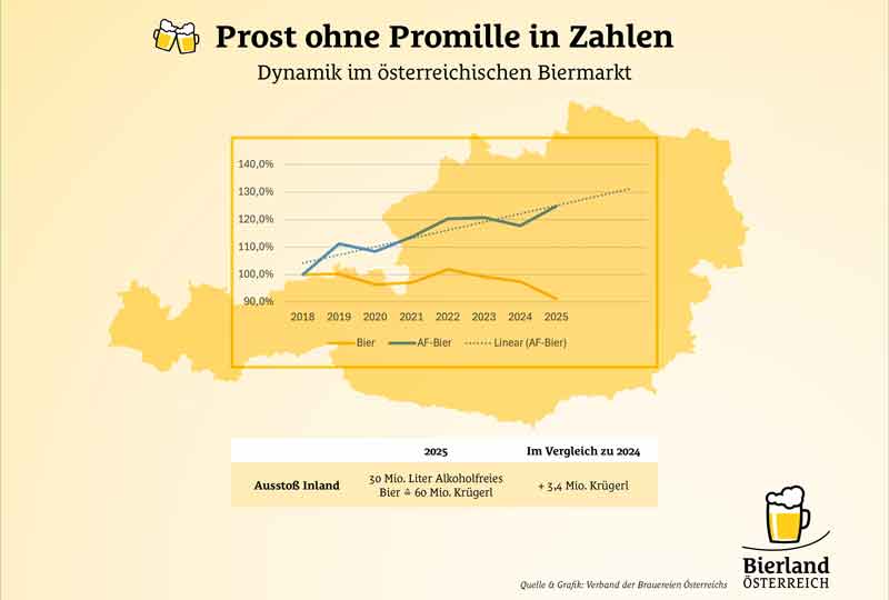 Österreichs Brauwirtschaft befindet sich in einer Phase spürbarer Veränderung. Der Gesamtausstoß im Vorjahr (Bier inkl. alkoholfreiem Bier und Export) belief sich auf 9,25 Mio. Hektoliter – das ist ein Rückgang von 7,1 Prozent zum Jahr 2024. Die Inlands-Produktion von Bier und alkoholfreiem Bier lag bei 7,88 Mio. Hektolitern, der Export kam auf 1,37 Mio. Hektoliter. Das Inlands-Minus fiel mit 6,1 Prozent deutlich aus; jenes im Export beträgt sogar 12,4 Prozent. Diese Entwicklung spiegelt strukturelle Veränderungen im Konsumverhalten und im Marktumfeld wider: Demografische Verschiebungen, ein verändertes Genussverhalten sowie eine gedämpfte wirtschaftliche Grundstimmung lassen die Sparquote steigen und die Ausgaben für Konsumgüter sinken. Positiv bemerkbar macht sich die steigende Nachfrage nach alkoholfreien Bieren. Die Konsolidierung im Absatz ist dabei kein österreichisches Phänomen: In ganz Europa sowie über alle Getränkesegmente hinweg mussten Produzenten 2025 teils deutliche Absatzverluste hinnehmen.