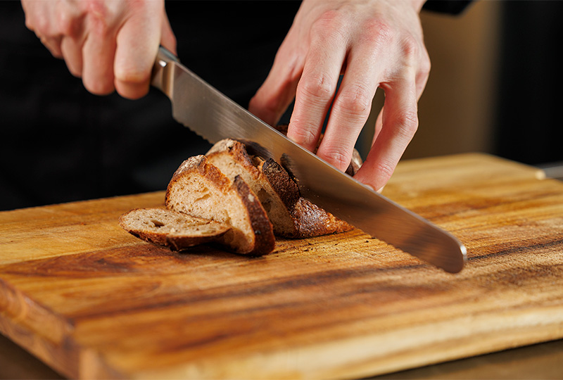 Brotmesser mit Wellenschliff, 21 cm: Spezielles Messer mit zackigem Wellenschliff für alle harten und weichen Brotsorten – mit einem sauberen Schnitt für gleichmäßige Scheiben.
