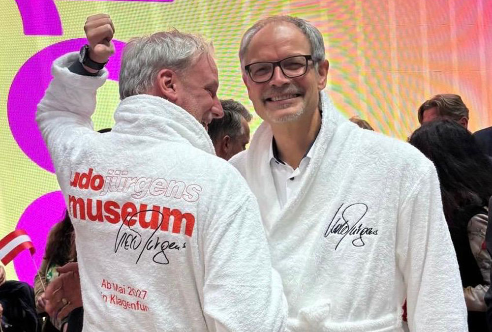 Der Österreich-Auftritt auf der ITB steht heuer im Zeichen des Eurovision Song Contest und schlägt zugleich eine emotionale Brücke nach Kärnten: Mit seinen Interpretationen der größten Hits von Udo Jürgens spannte Künstler Simon Stadler am Dienstagabend den Bogen zur Heimat des international erfolgreichen ESC-Siegers und kulturellen Botschafters Kärntens. Im Rahmen einer gemeinsamen Marketingaktion mit Klagenfurt Tourismus und dem kärnten.museum – stilecht in Bademänteln – wurde zudem bereits auf das neue Udo-Jürgens-Museum aufmerksam gemacht, das 2027 eröffnen wird.