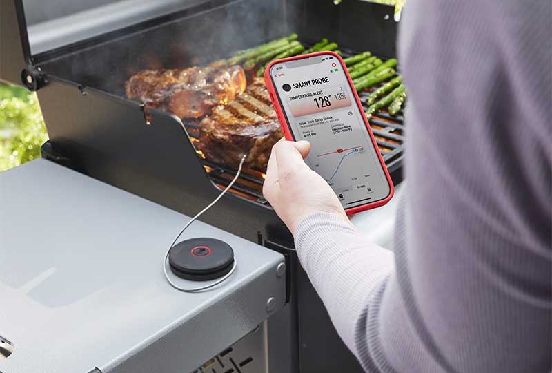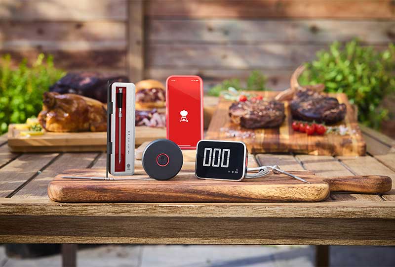 Im Zentrum der neuen Entwicklungen steht ein vernetztes System aus Grill, Zubehör und Smartphone. Herzstück ist eine App, über die sich Temperaturen überwachen, Garzeiten planen und Hinweise zum richtigen Zeitpunkt zum Wenden oder Servieren abrufen lassen. Kabellose Temperaturfühler liefern dabei kontinuierlich Daten aus dem Grill.