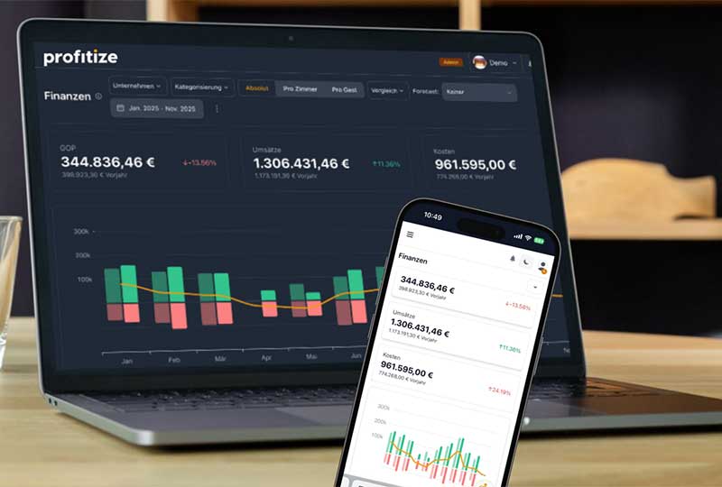 Diesen Ansatz verfolgt profitize, eine KI-gestützte Plattform für Finanzplanung und -analyse speziell für Hotels. Sie bündelt Daten aus PMS, Buchhaltung, Bank, POS und Personalplanung und liefert Echtzeit-Einblicke, Forecasts und Handlungsempfehlungen. Michael Gorfer, Mitgründer von profitize: „Wir bieten Finanzanalysen per Knopfdruck und geben Hoteliers die Werkzeuge, um Entscheidungen auf Basis von Daten zu treffen statt auf reinem Bauchgefühl.“