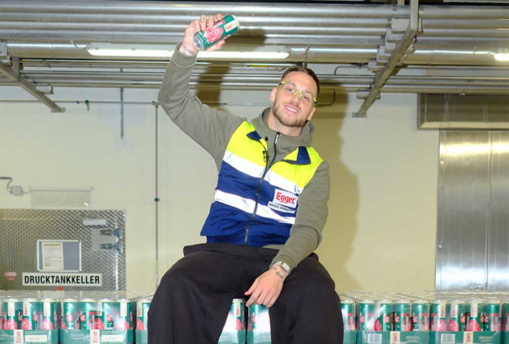 Zu seiner Kooperation mit Egger sagt Marko Arnautović: „Ich bin keiner der sich einfach irgendwo dazustellt, ich hab‘ immer mein eigenes Ding gemacht. Darum passt das mit Egger gut für mich … und dass ich jetzt auch auf der Dose drauf bin, taugt mir natürlich auch.“