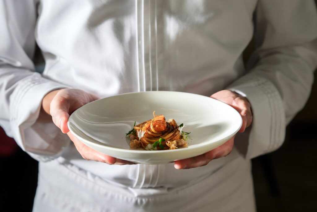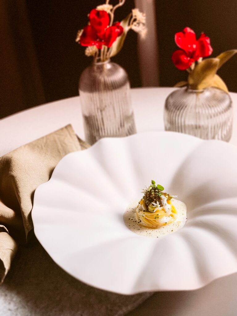 Al Bronzo wird von der italienischen Köchevereinigung (FIC) als bestes Beispiel für handwerkliche Qualität und Zuverlässigkeit hervorgehoben. Dieses Streben nach Exzellenz spiegelt sich auch in der Zusammenarbeit mit renommierten italienischen Chefköchen wie Lorenzo Sacchi (Il Circolino, Monza, 1 Michelin-Stern) und Daniele Repetti (Il Nido del Picchio, Carpaneto Piacentino) wider, die von der außergewöhnlichen Textur und perfekten Saucenhaftung der Pasta beeindruckt sind. Wie vielseitig sich Barilla Al Bronzo in der Spitzengastronomie einsetzen lässt, zeigt auch Sören Herzig (Herzig, 1 MichelinStern, 4 Hauben) in seinem Restaurant in Wien. Bereits 2018 bei der Pasta World Championship für Österreich am Start und seit 2023 offizieller Al Bronzo Botschafter, bringt er mit seinem charakterstarkem Signature Dish – Linguine mit Sake Beurre Blanc, Schnittlauchöl und Salzburger Störkaviar – die Vorzüge von Al Bronzo eindrucksvoll zur Geltung. Das Rezept finden Sie im Presskit.